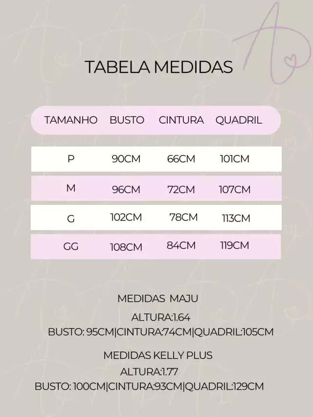 Comprimento:112cm|Busto:34cm|Cintura:34cm|Quadril:80cm